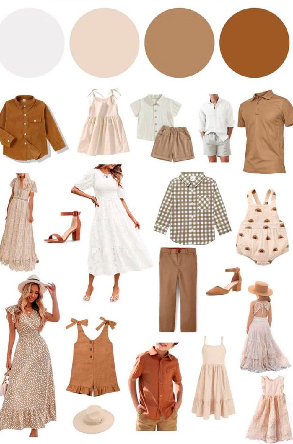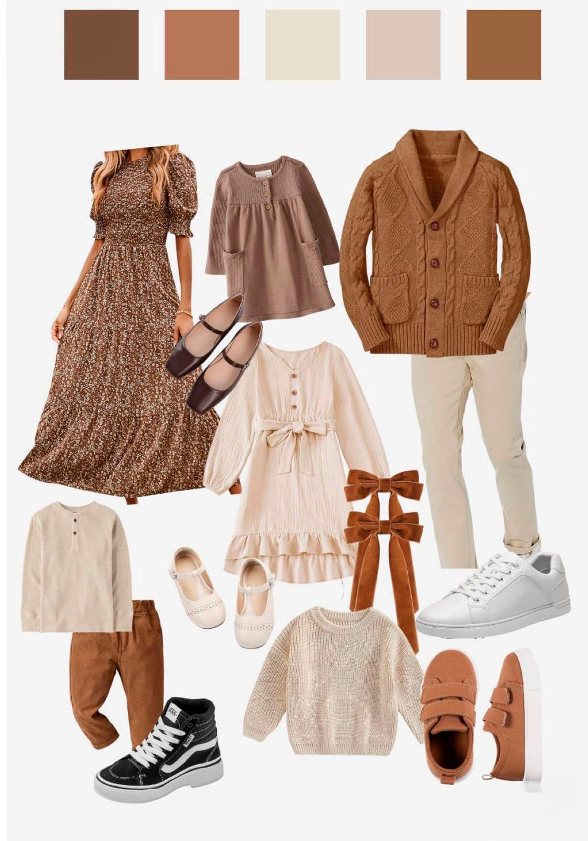 La clave está en elegir una paleta de colores y jugar con ella. Imagina que eliges tonos tierra: mamá puede llevar un vestido beige, el peque un peto mostaza y papá una camisa en tono arena o lino. ¿Ves la diferencia? Siguen una línea, pero cada uno mantiene su personalidad.